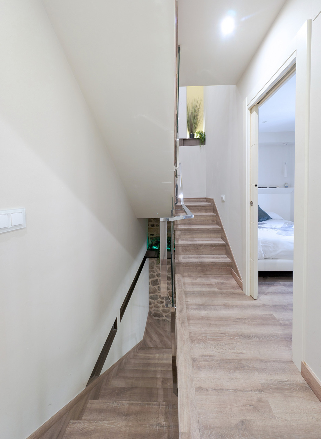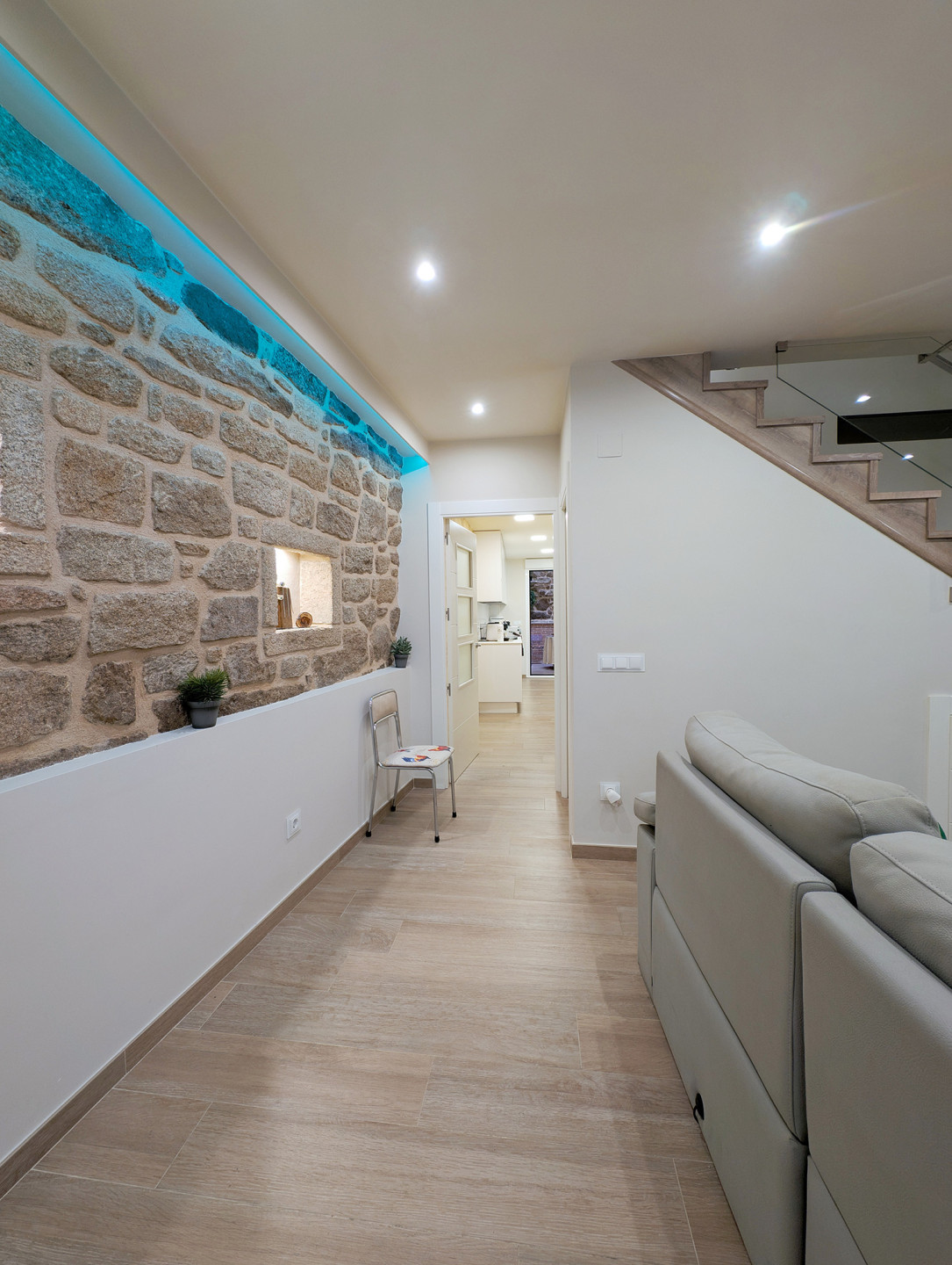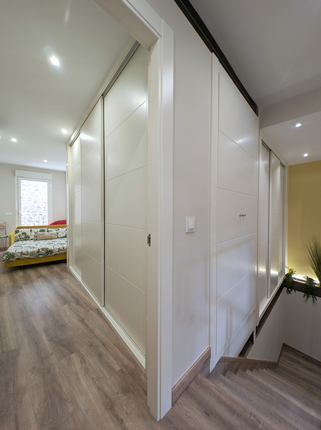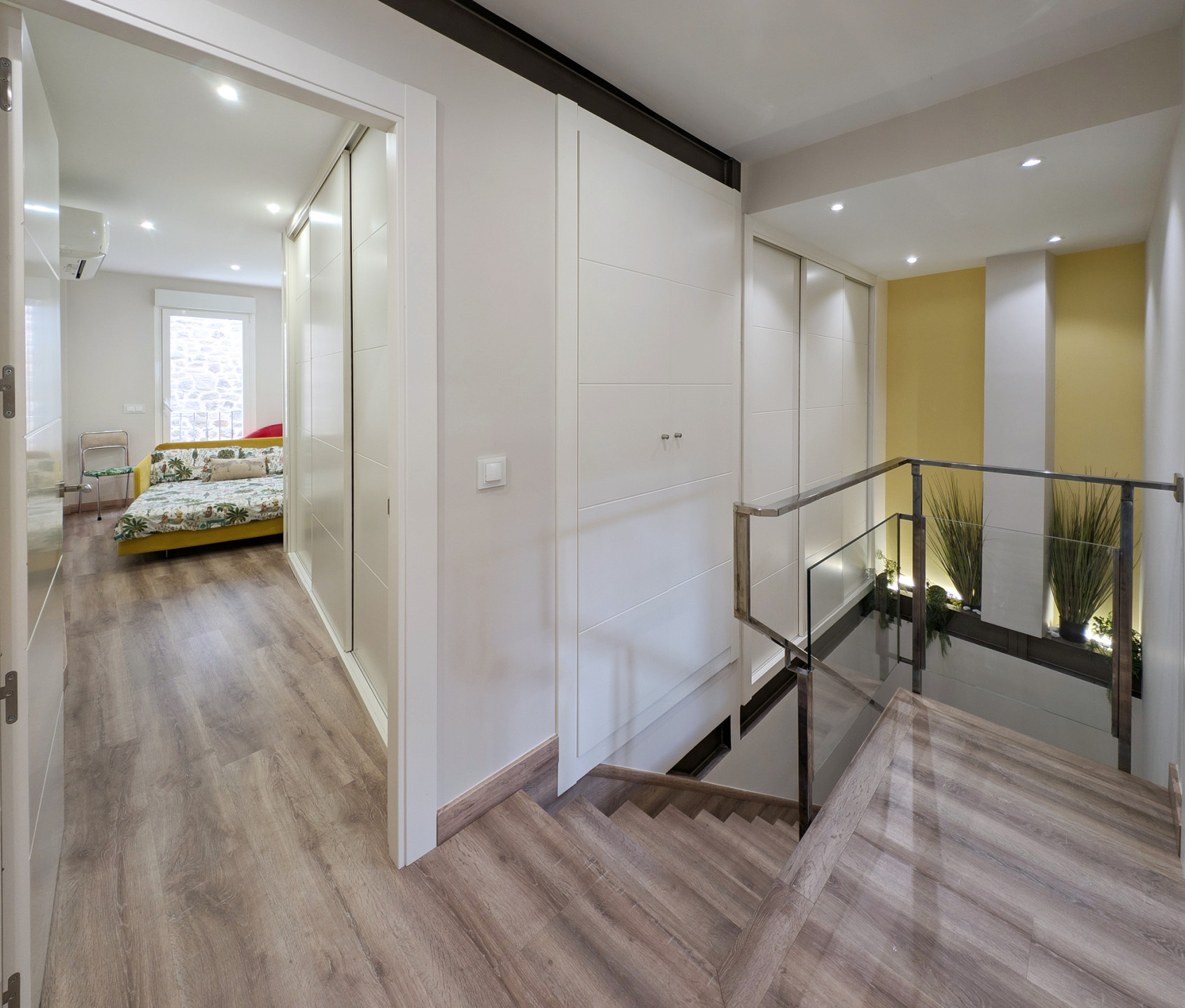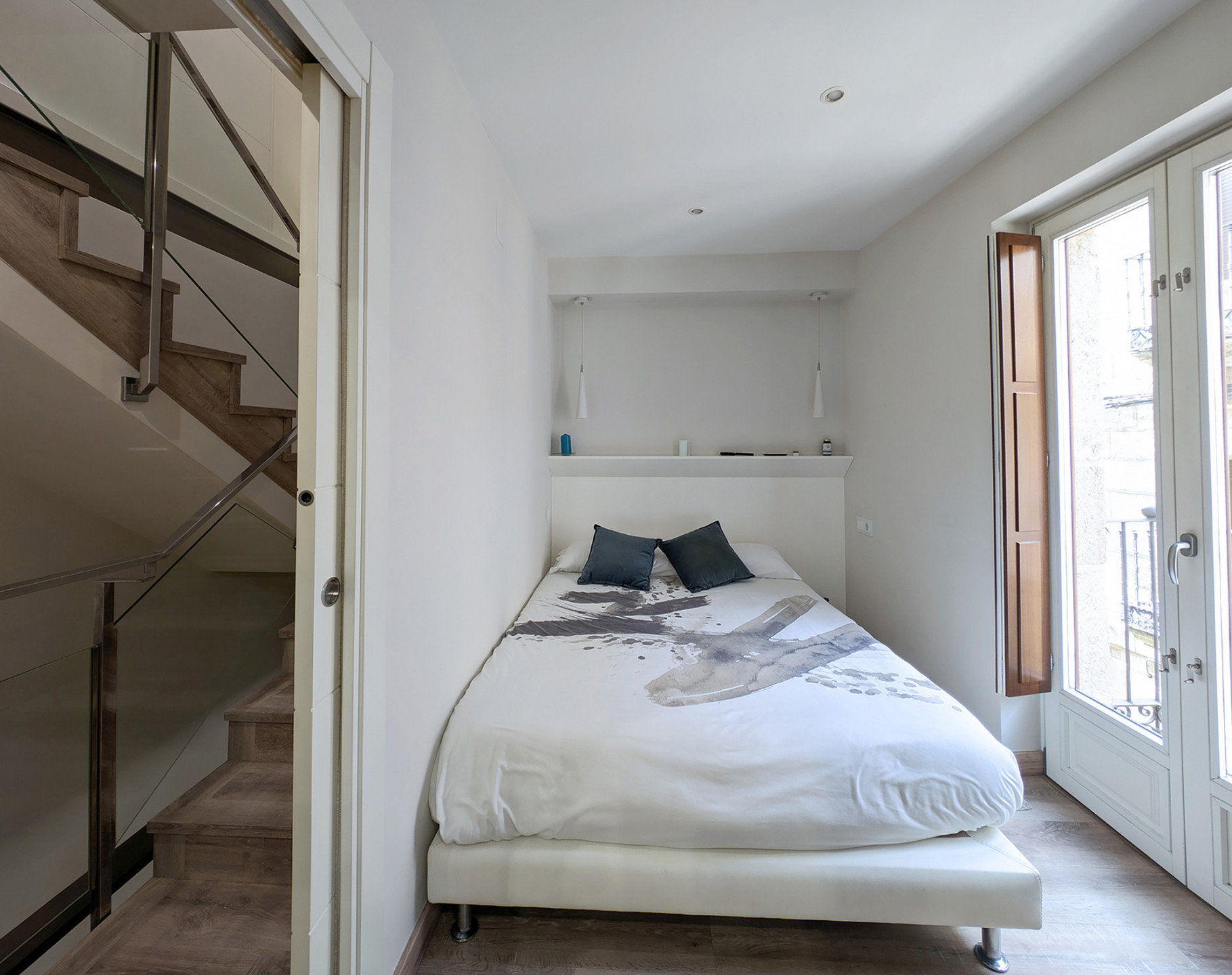 Bedrooms and bathroomThe second floor brings together the most versatile rooms. It offers a bedroom with a king-size bed and another with a sofa bed, designed to suit families or small groups. In addition, there is a full bathroom and another interior terrace, providing natural light and an extra spot to unwind.