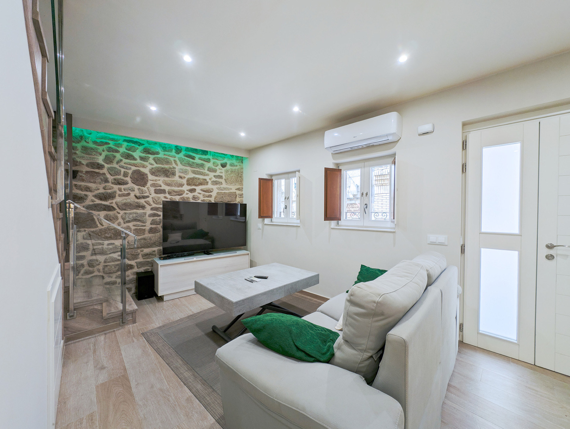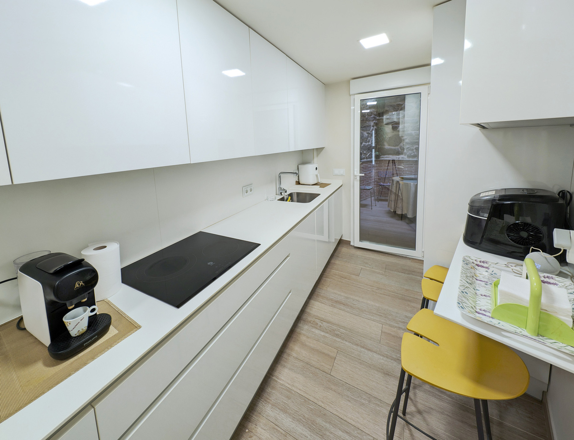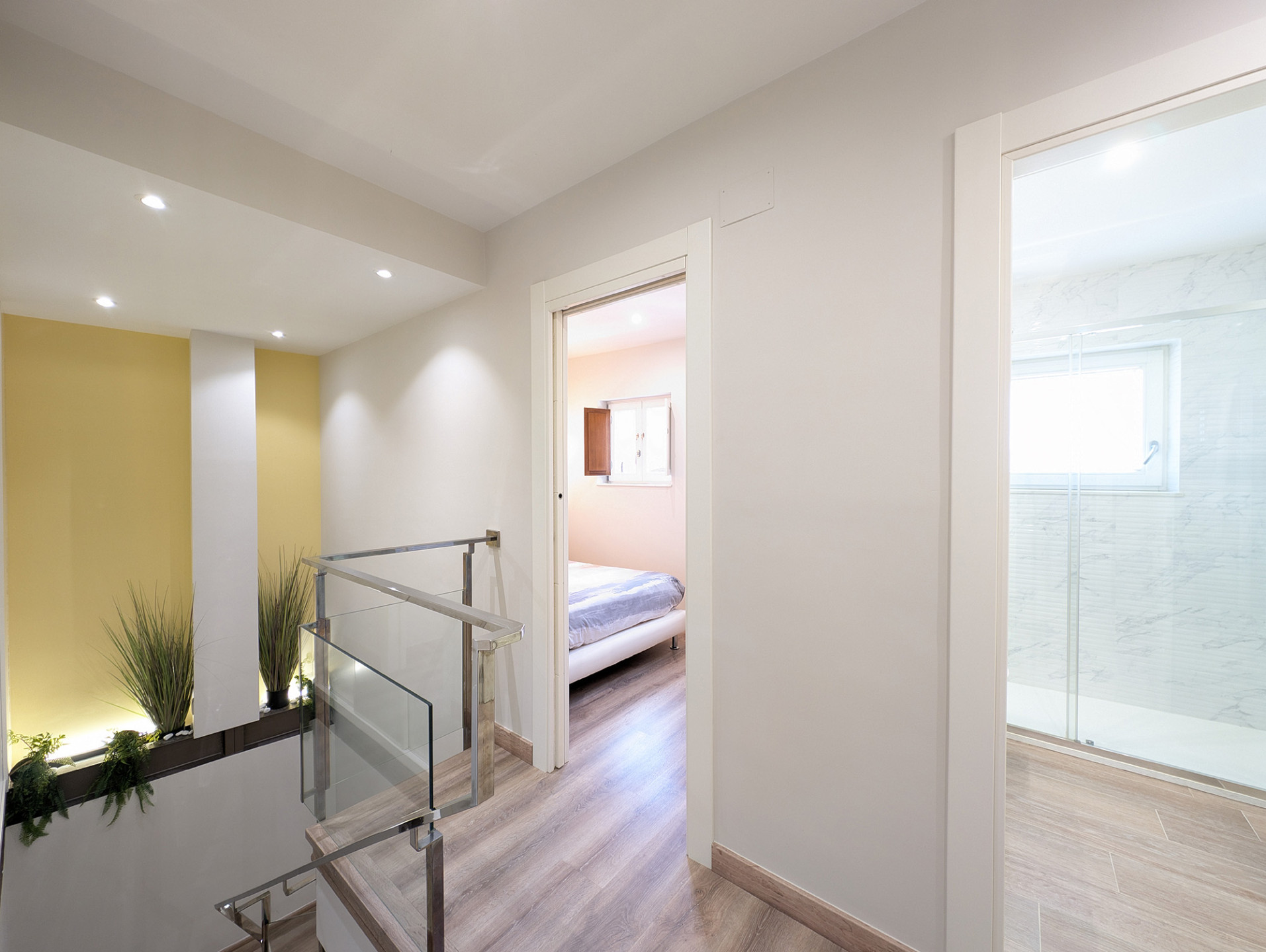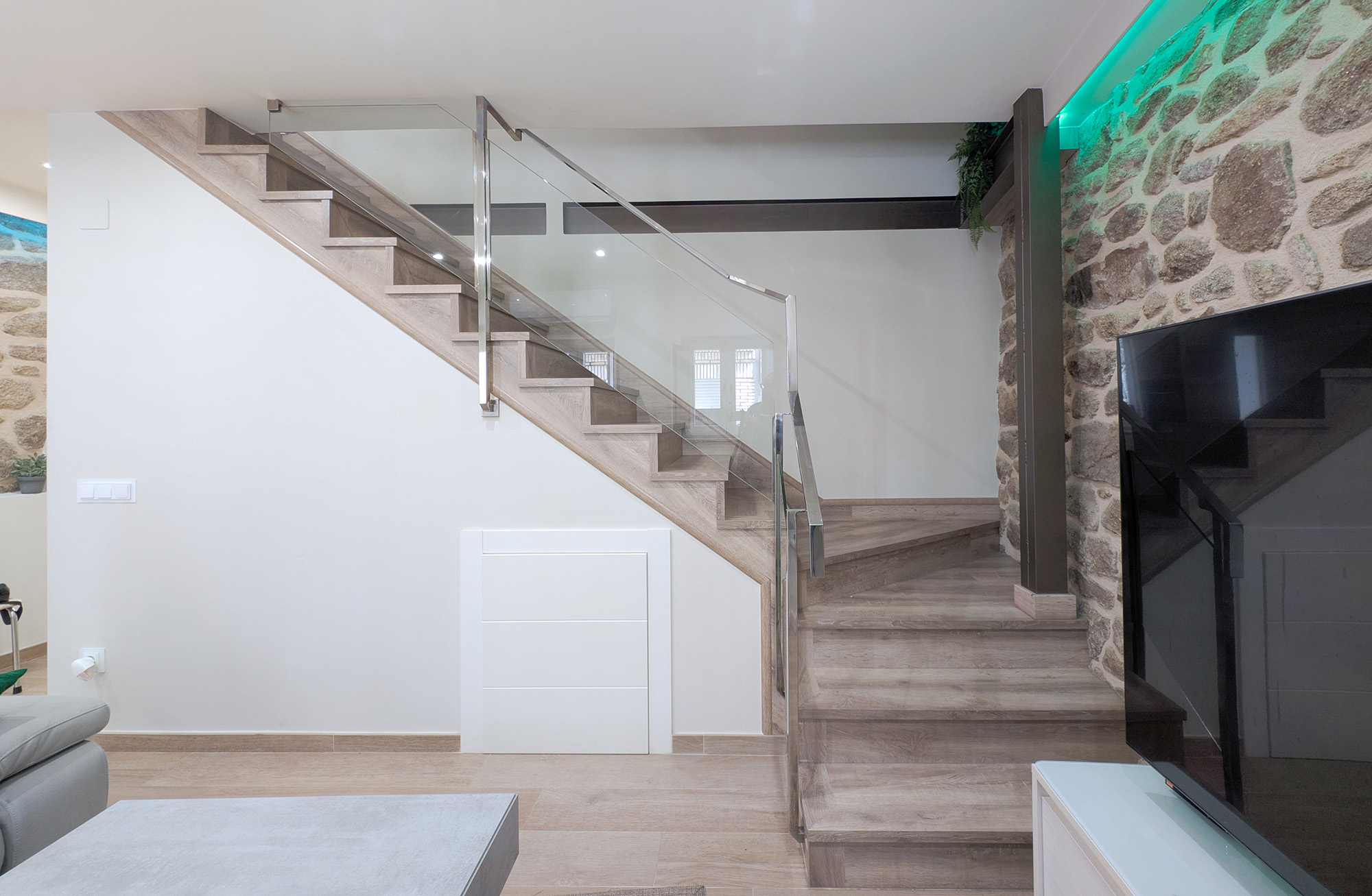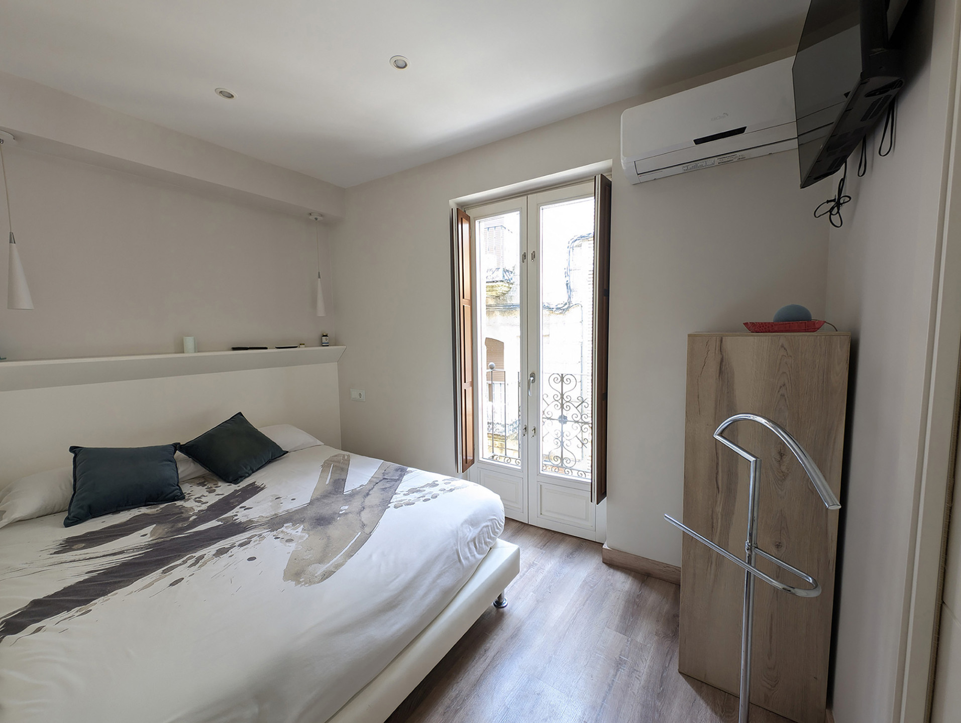Bedrooms and bathroomThe second floor brings together the most versatile rooms. It offers a bedroom with a king-size bed and another with a sofa bed, designed to suit families or small groups. In addition, there is a full bathroom and another interior terrace, providing natural light and an extra spot to unwind.