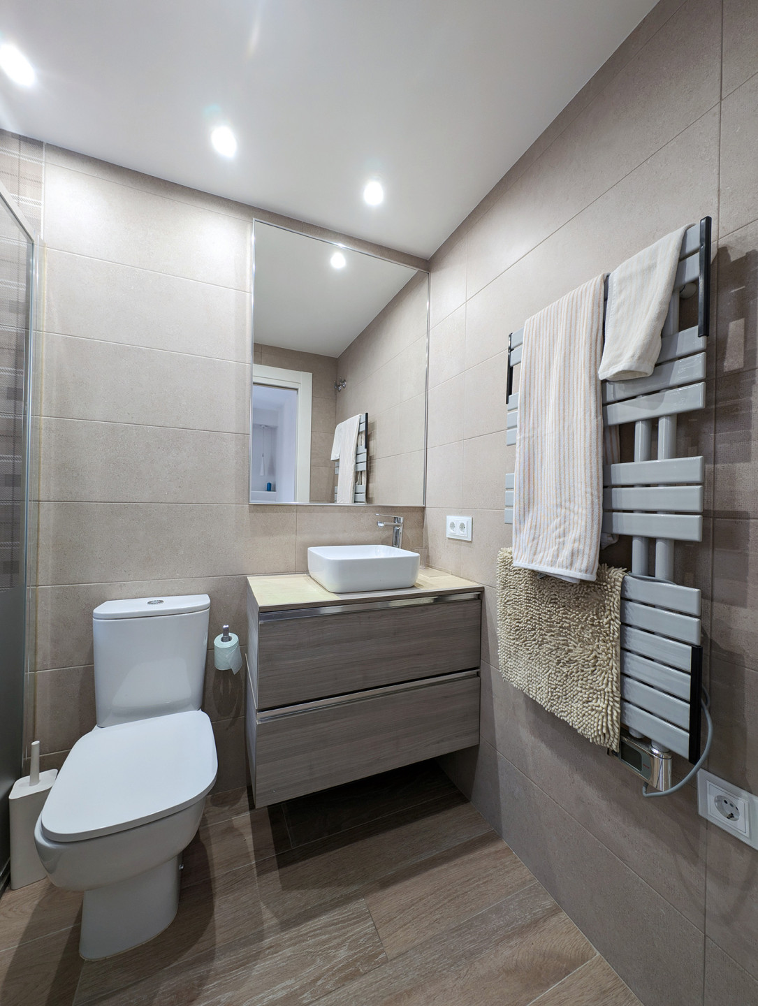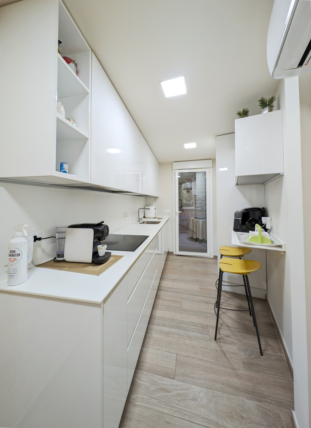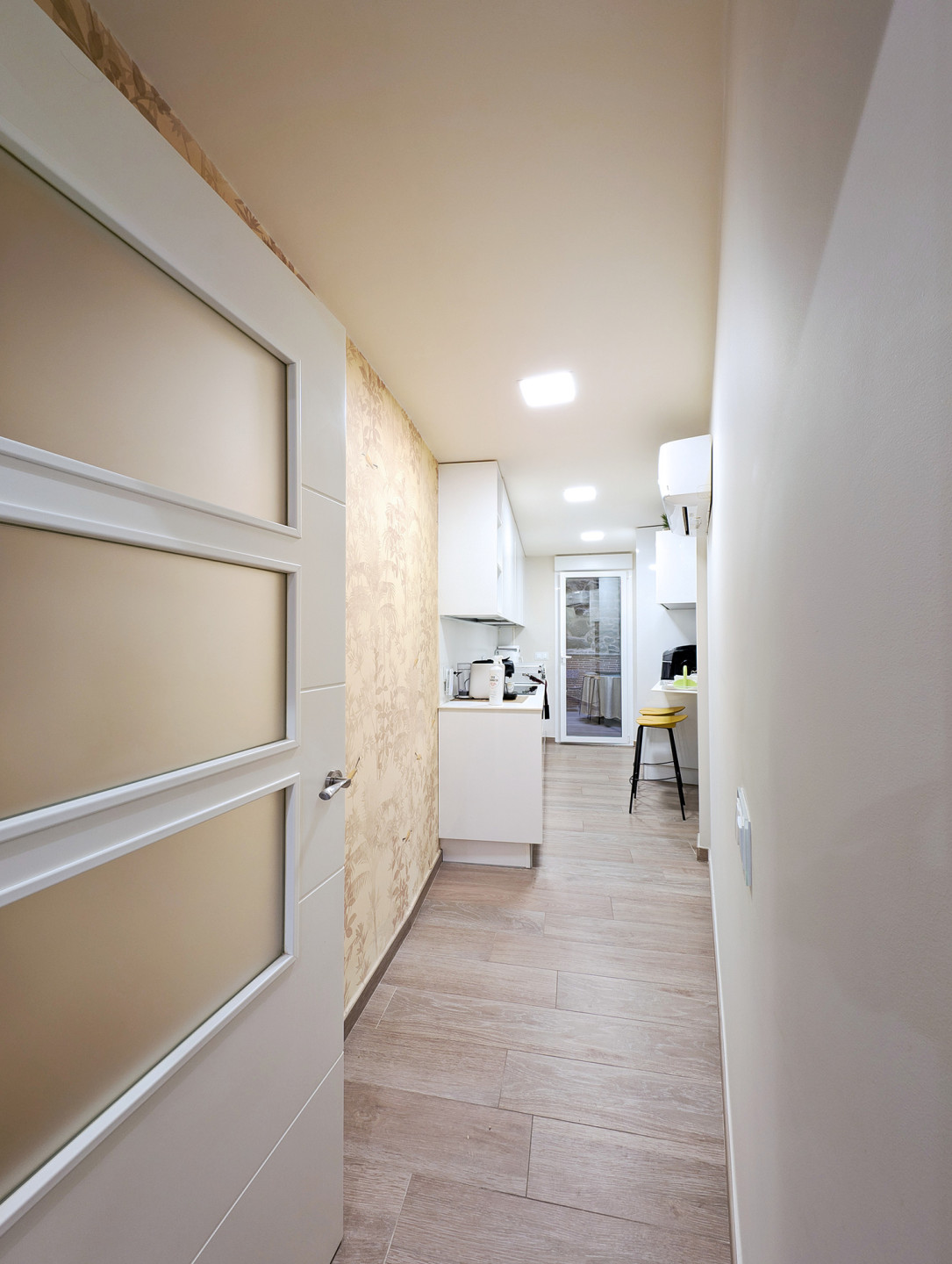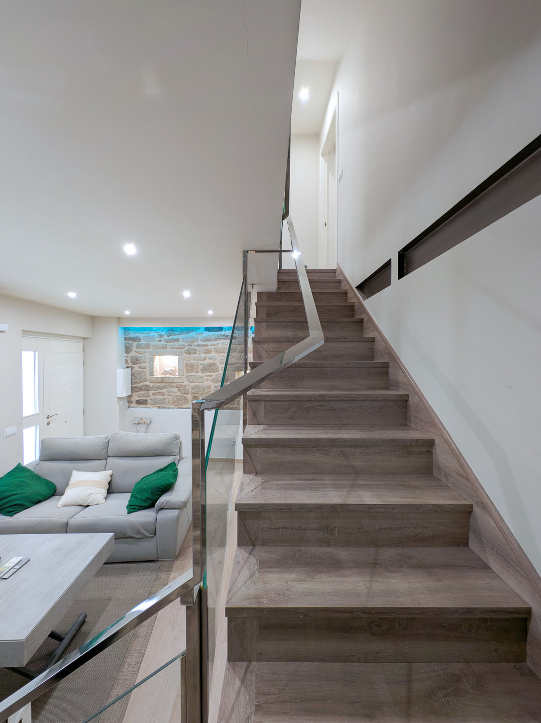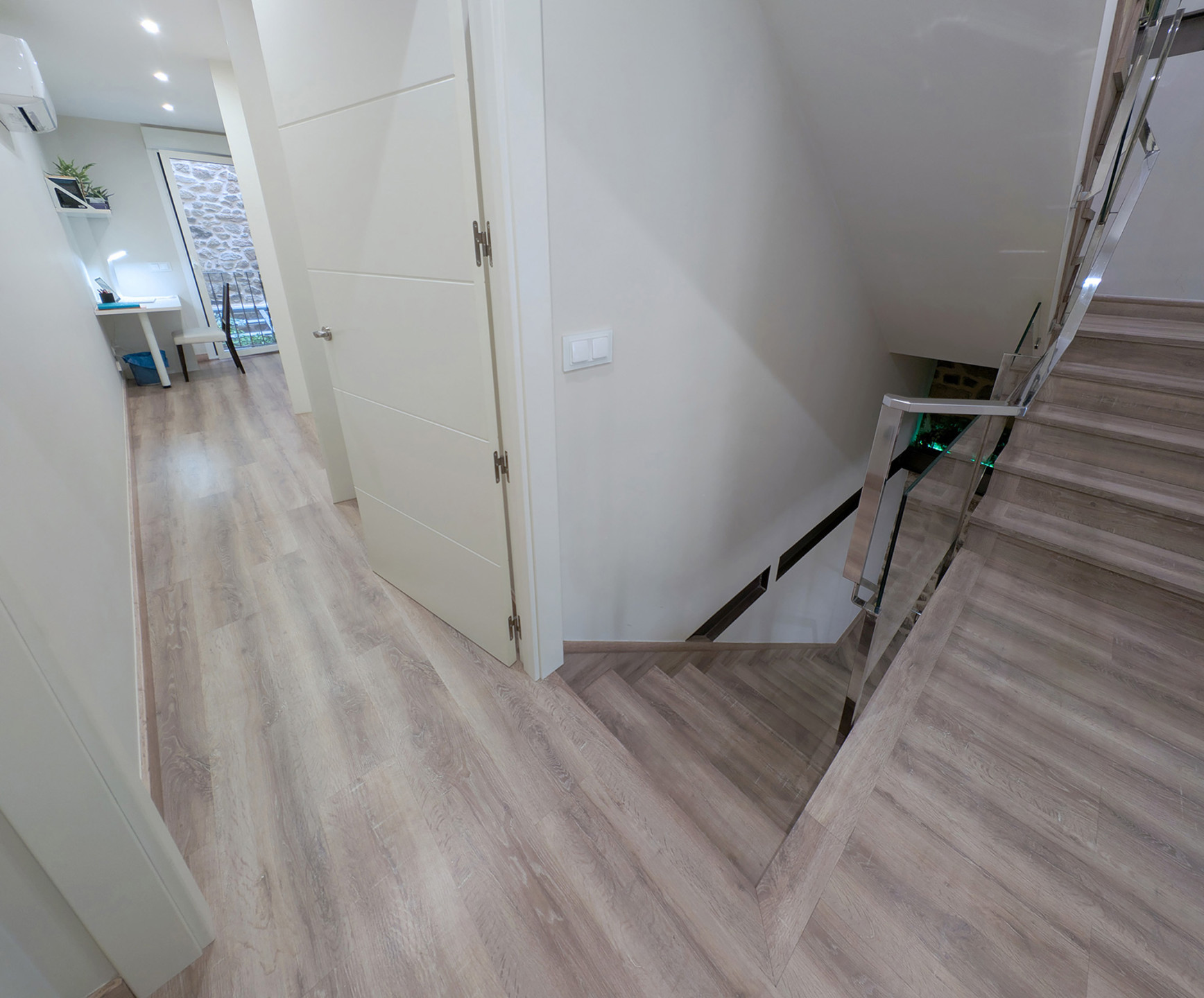 Bedrooms and bathroomThe second floor brings together the most versatile rooms. It offers a bedroom with a king-size bed and another with a sofa bed, designed to suit families or small groups. In addition, there is a full bathroom and another interior terrace, providing natural light and an extra spot to unwind.
